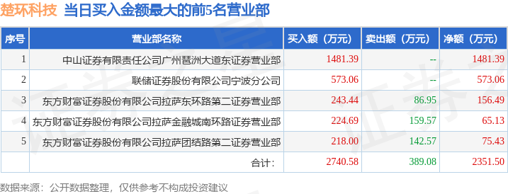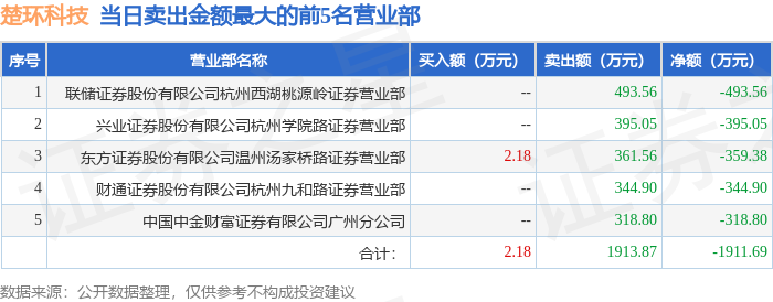 证券之星消息股票配资公司详情,沪深交易所2025年4月2日公布的交易公开信息显示,楚环科技(001336)因日跌幅偏离值达到7%的前5只证券登上龙虎榜。此次是近5个交易日内第2次上榜。